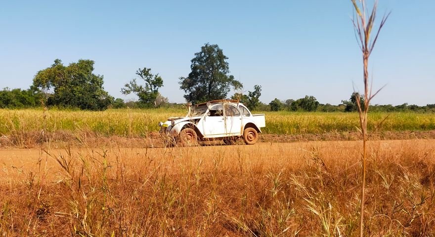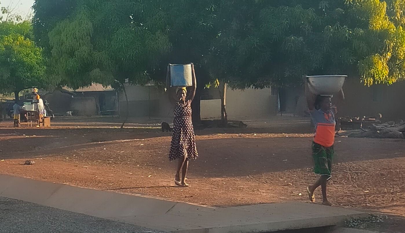 Une fois quitté les montagnes, sur les derniers 100 km soufflait un fort vent chaud. arrivé à Bimbila, 37°c. on retrouve le climat du Burkina
