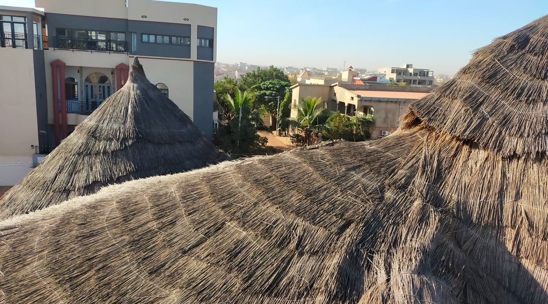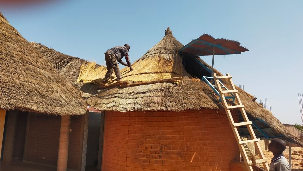 Le village à bien changé, mais on peut encore voir quelques cases traditionnelles au coté de construction plus modernes (carrée avec toi en tôles)