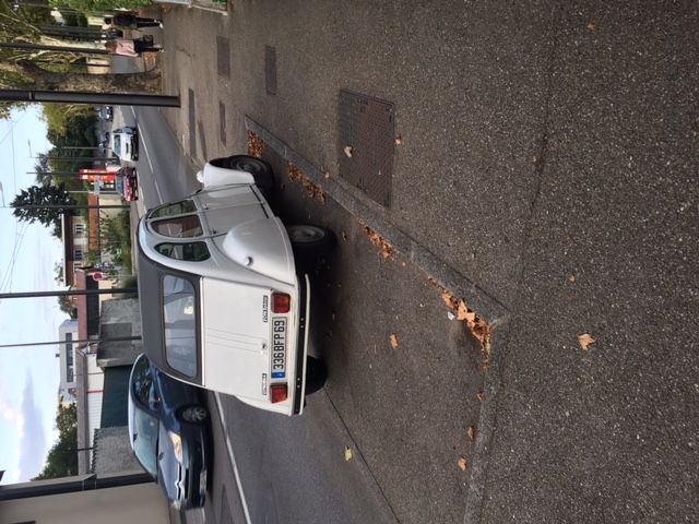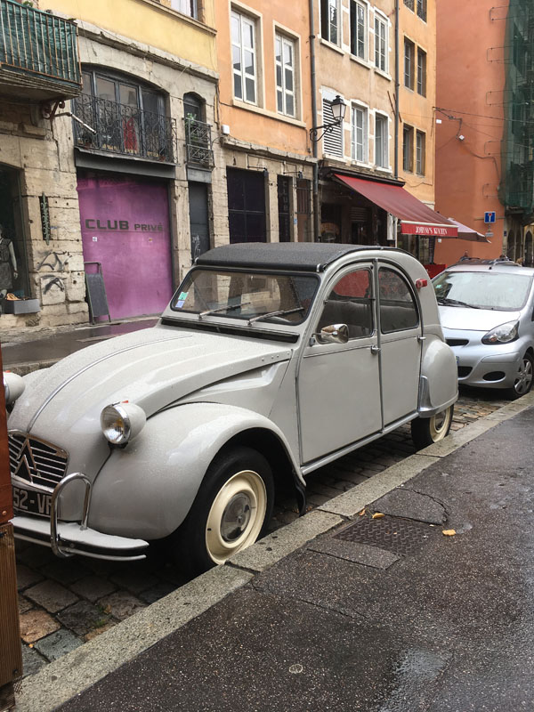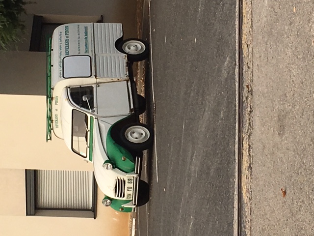 Devant le garage Gallien (photo prise en décembre 2016) on y voit l'Ami6 de l'homme moustachu portant un chapeau qui boit de l apéritif de 1932