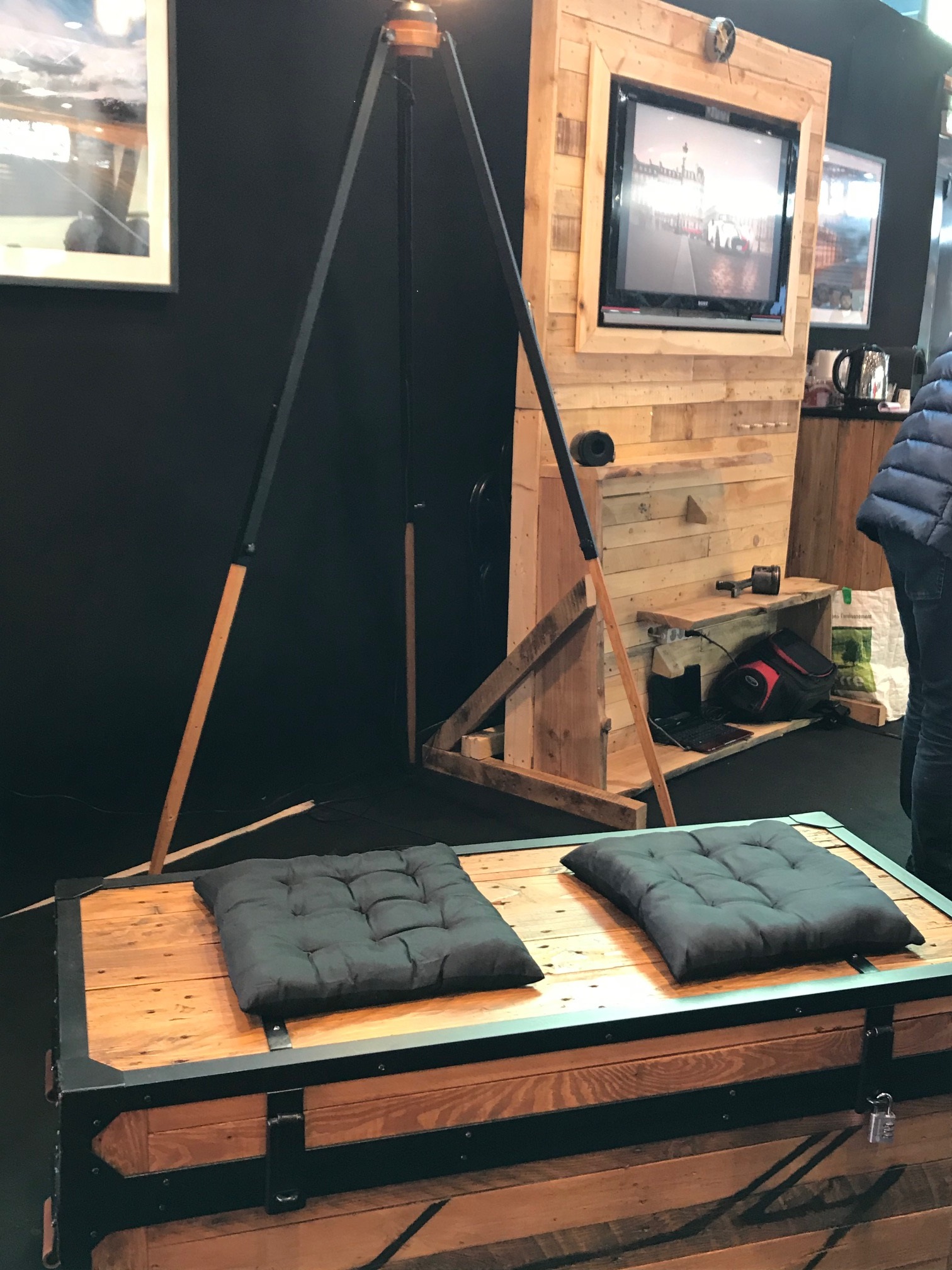 Une belle banque en palettes ! De nombreux stands utilisent comme nous ce merveilleux matériau !