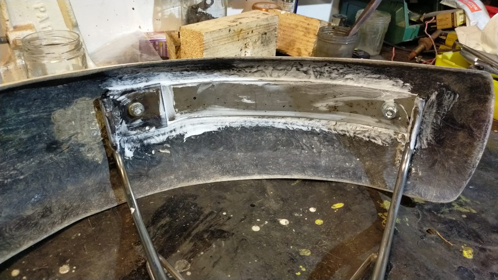 Meulage du bras pour supprimer les boulets de soudure, et faciliter le passage des colliers.