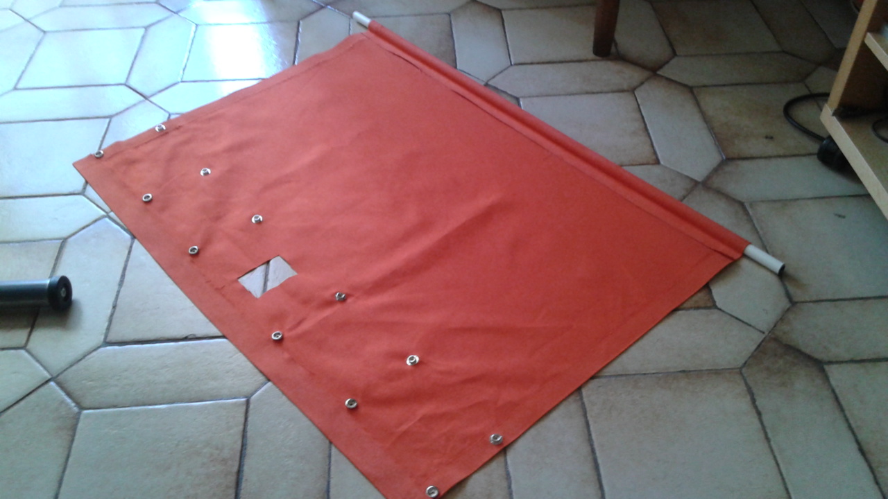 C'est de la toile de chez mondial tissu un tube de tringle a rideaux des pressions de la bande thermocollante et d'un peu d'huile de coude ;;