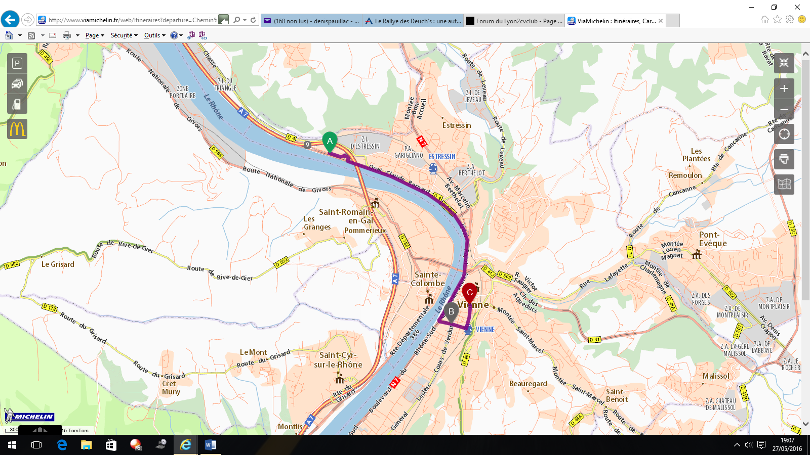 Si j'arrive à savoir par ou et à quelle heure elles passent, je vais essayer le les rencontrer pas loin de mon boulot (Saint Quentin Fallavier) pour les suivre jusqu'à Vienne.