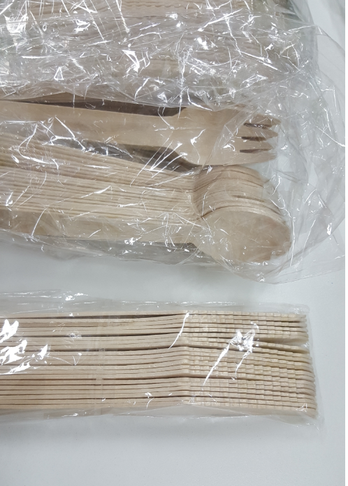 J'ai acheté 100 couverts en bois comme discuté lors de la réunion.