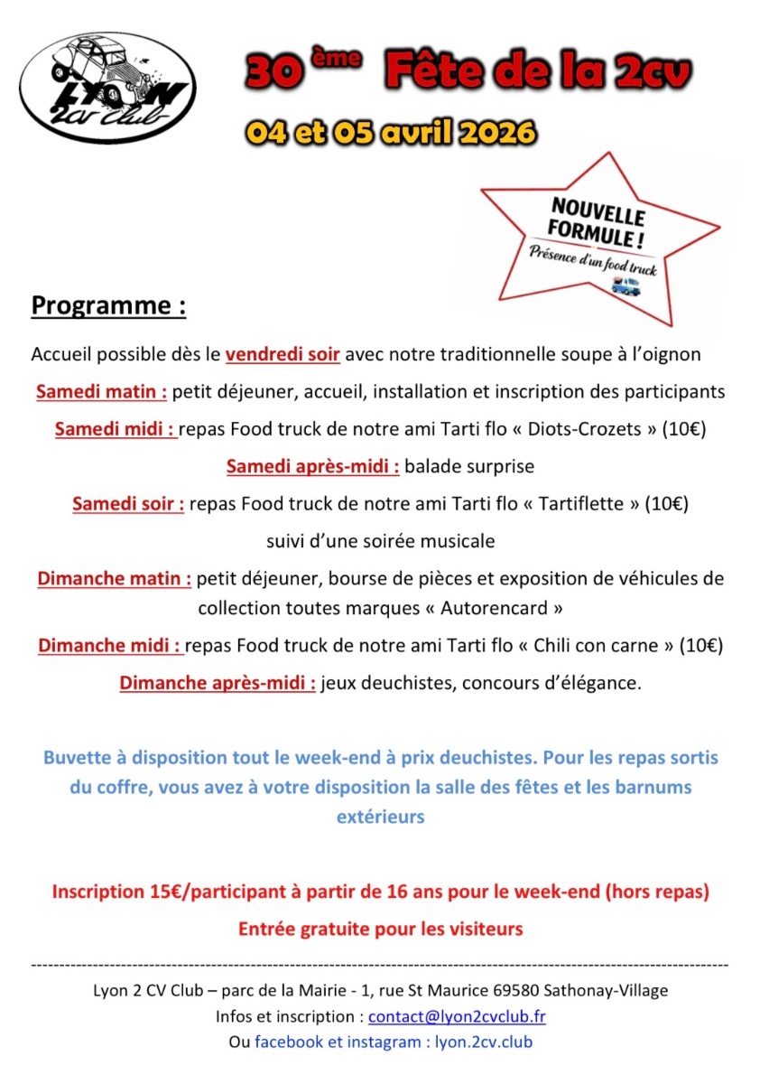 Grande nouveauté, il y aura un Food Truck sur place pour la journée du samedi (midi et soir) . Le dimanche repas tiré des coffres